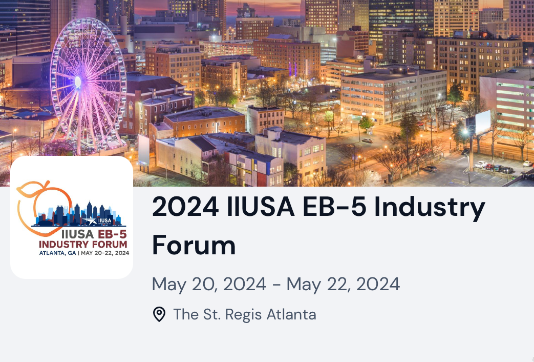 著名EB5行业组织投资美国协会(IIUSA)组织的EB5 行业年会于2024年5月20至5月22号在亚特兰大召开。