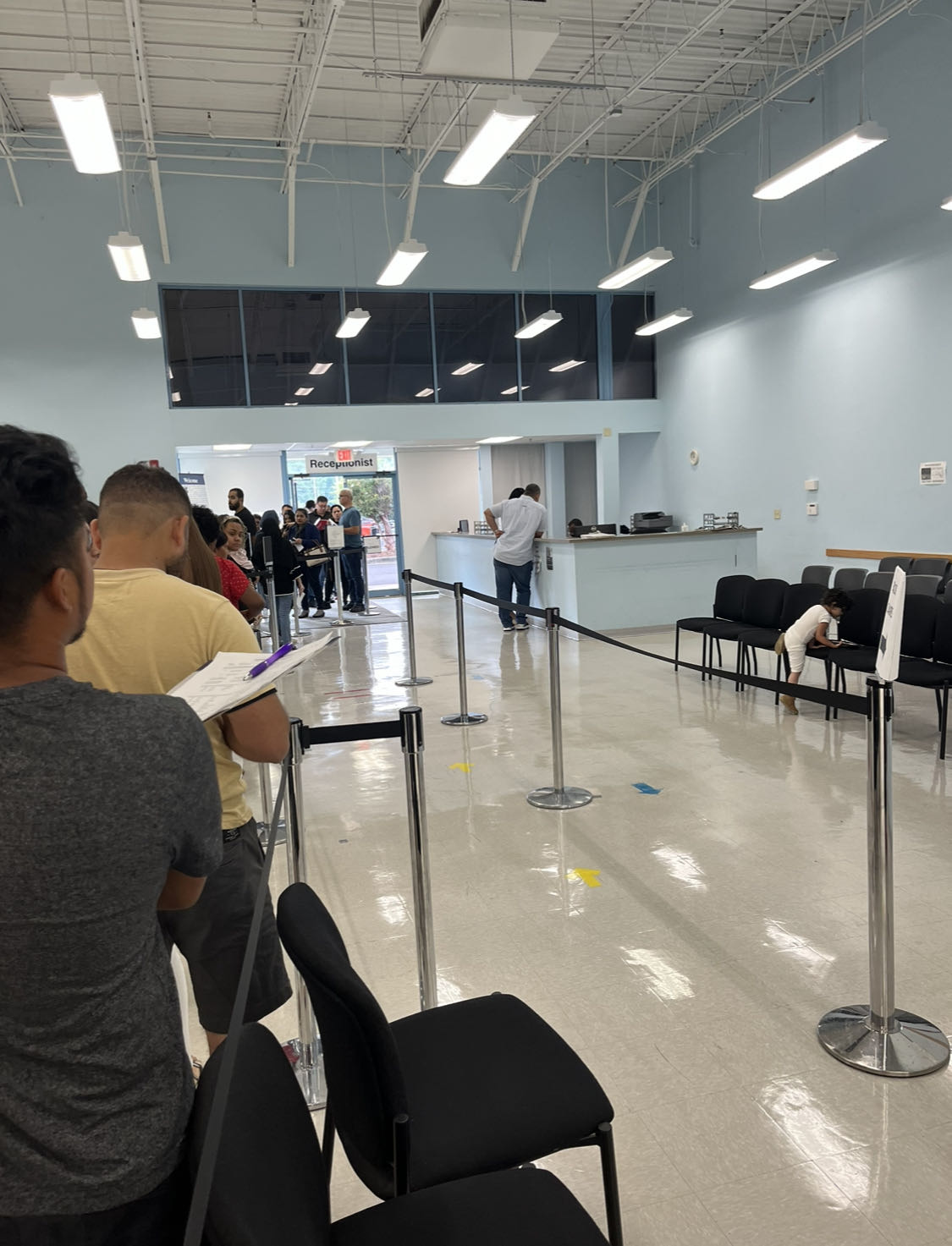 我上午9:45分钟排队进去,见一个小柜台的工作人员,工作人会检查预约通知,查验身份证明,给了一张简单的信息表要我填写,然后