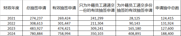 H-1B抽签历史数据